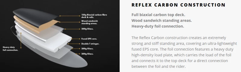 Der Deckshape ist konkav und bietet nicht nur stabilen, komfortablen Stand, sondern sorgt auch für eine deutlich verbesserte Kraftübertragung. So fühlst du dich deutlich besser mit dem Foil verbunden und wirst eine Einheit mit deinem Material.