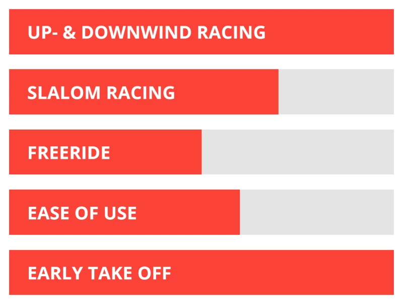 - The extra-large cutaways help the board to plane and take-off in the lightest winds.